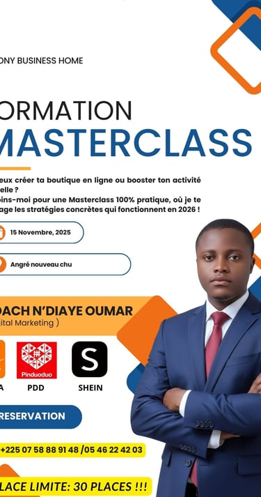 ONY TERRANGA HOME est née d’une volonté claire : permettre aux entrepreneurs d’accéder à des compétences fiables et actuelles en marketing digital et en import-export.